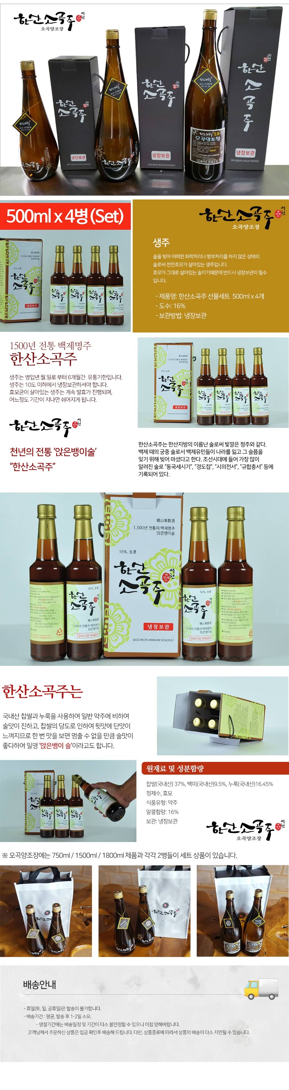 한산소곡주 선물세트 500ml x 4개
