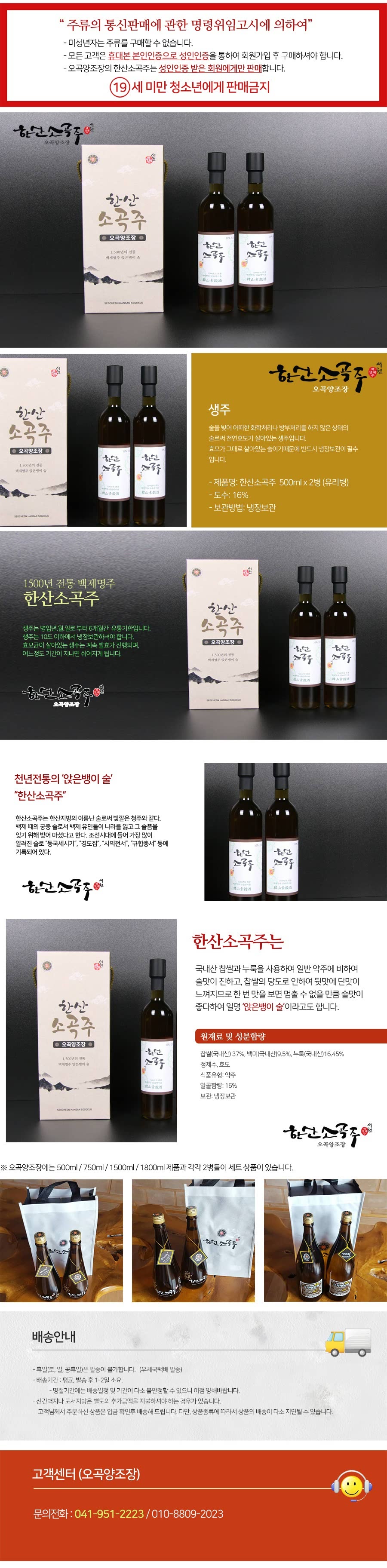 한산소곡주 선물세트 500ml x 2개